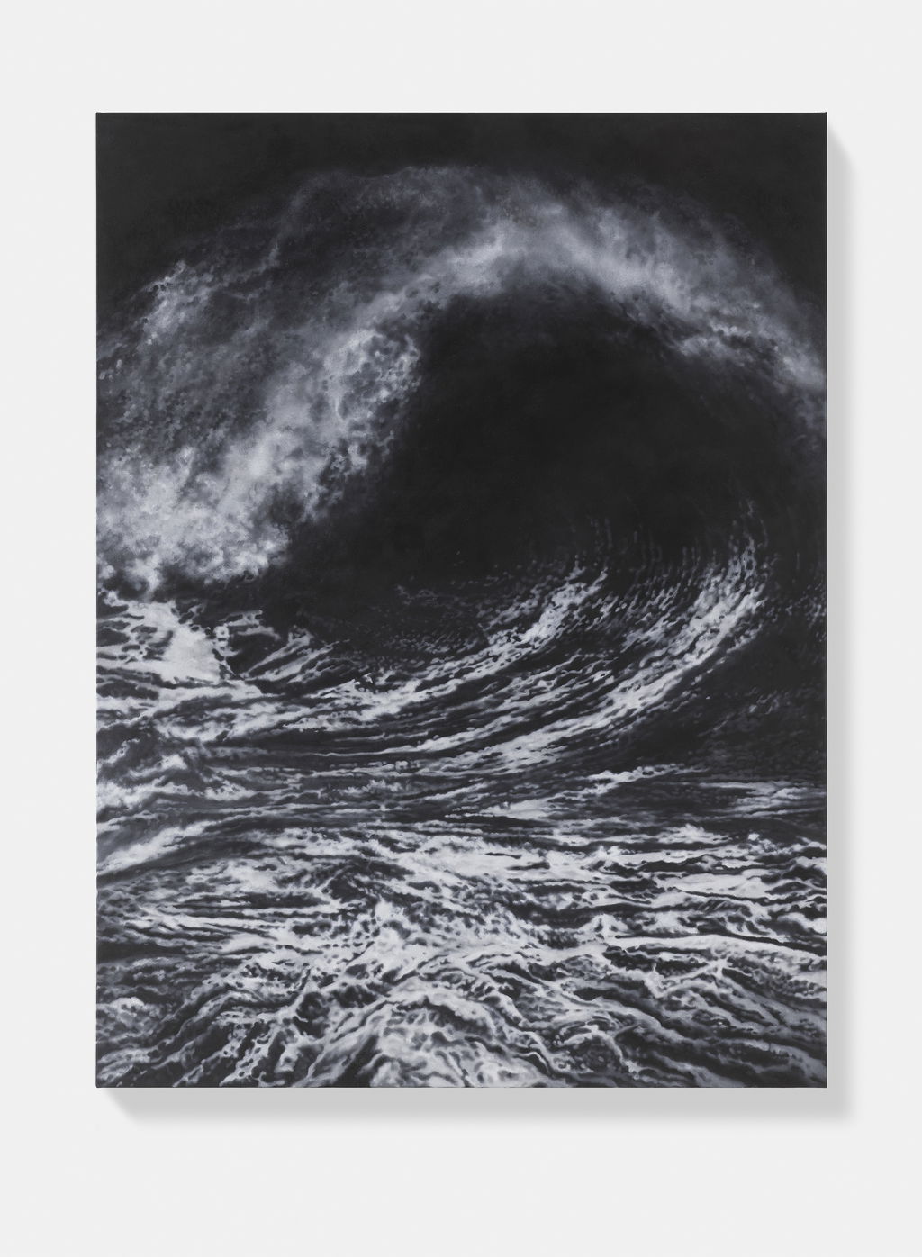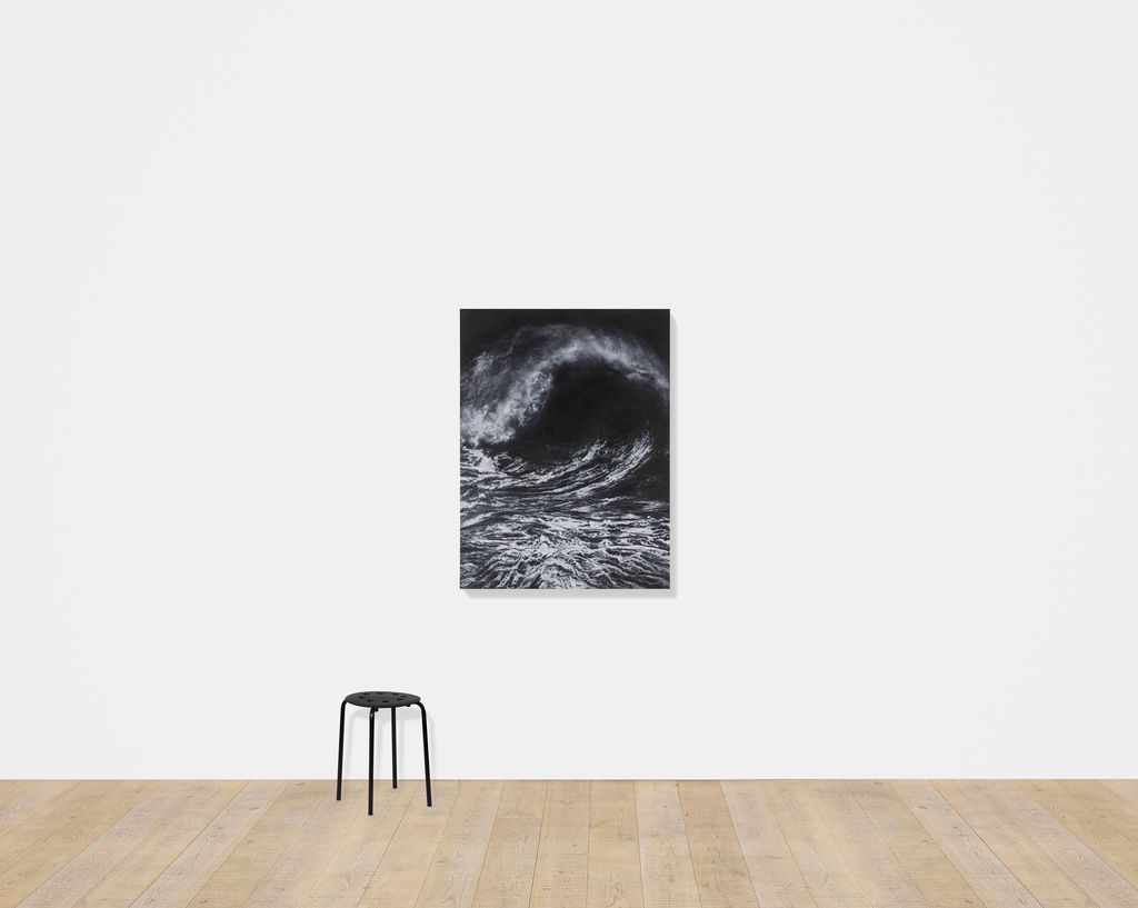 'Sea Paintings' marks the latest iteration in Hirst’s long-established practice of producing paintings after photographs, and freezes in greyscale the power and energy of coastal storms.