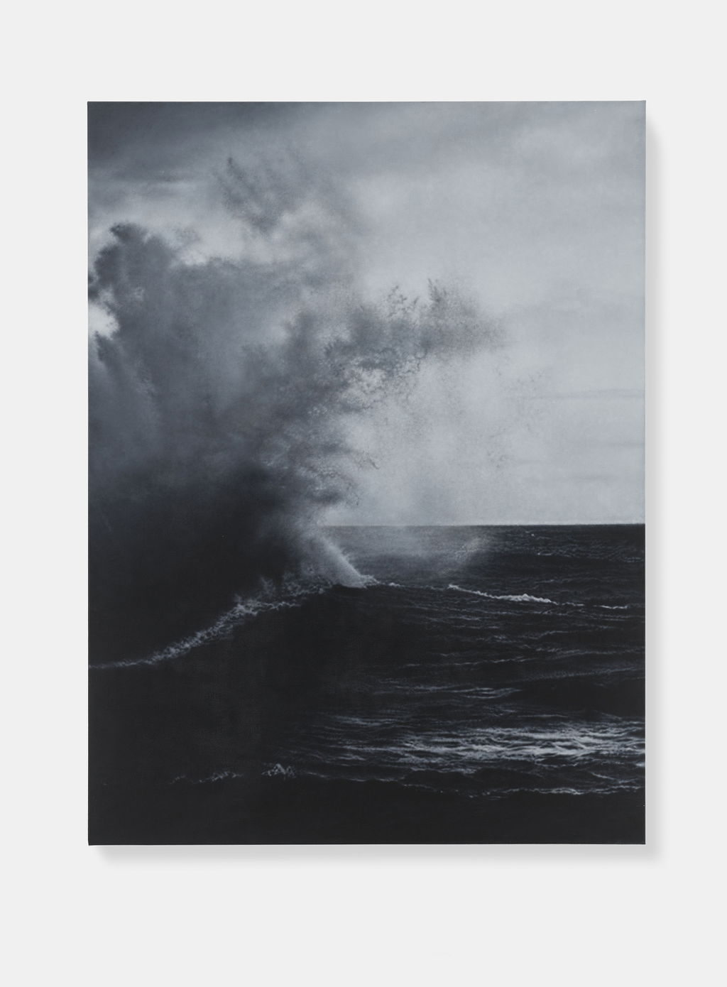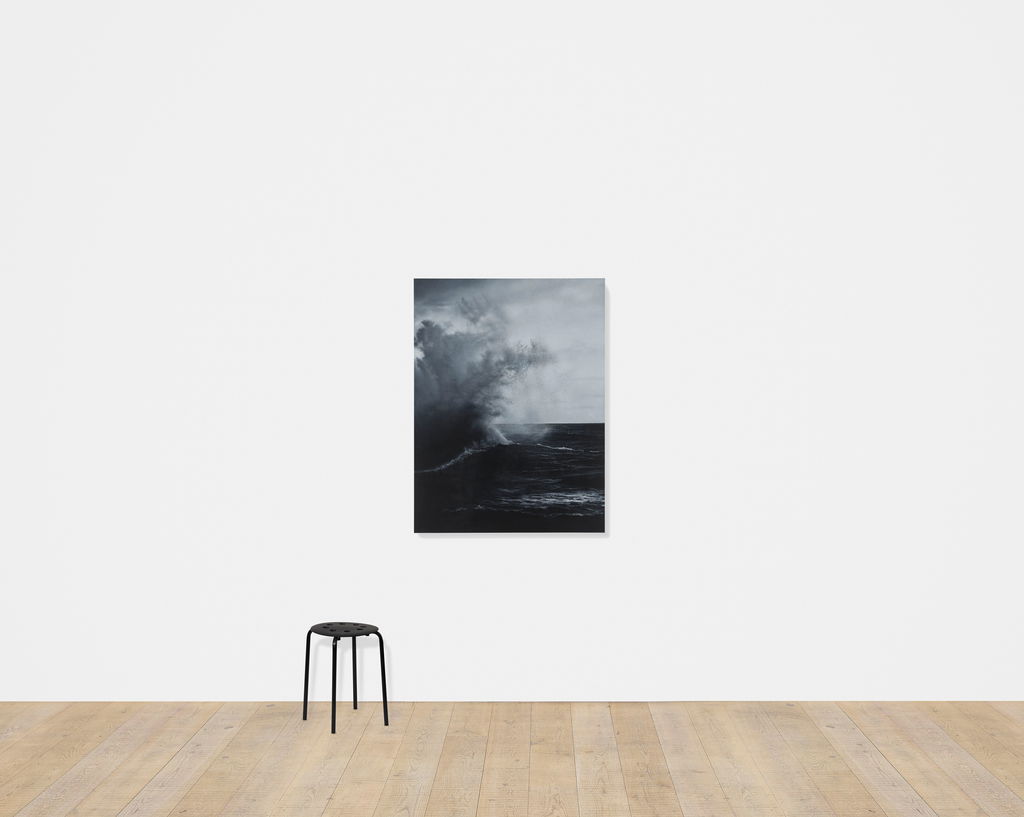 'Sea Paintings' marks the latest iteration in Hirst’s long-established practice of producing paintings after photographs, and freezes in greyscale the power and energy of coastal storms.