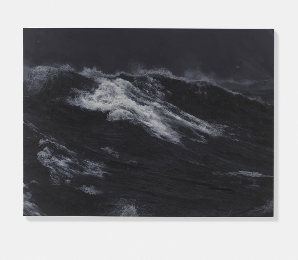 'Sea Paintings' marks the latest iteration in Hirst’s long-established practice of producing paintings after photographs, and freezes in greyscale the power and energy of coastal storms.