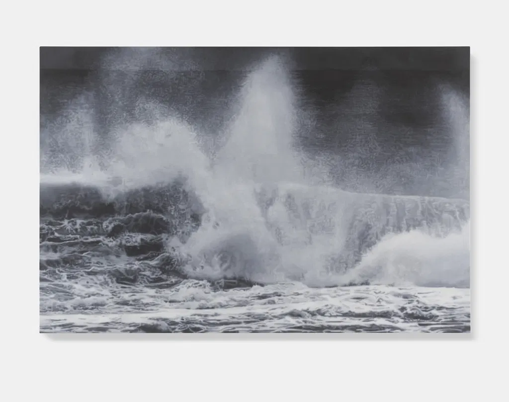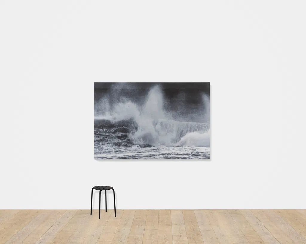 'Sea Paintings' marks the latest iteration in Hirst’s long-established practice of producing paintings after photographs, and freezes in greyscale the power and energy of coastal storms.