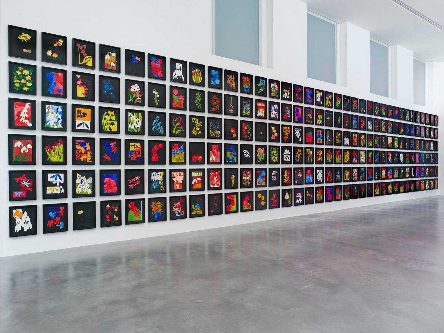 The 327 artworks are Acrylic Painted Paper Collage on Black Card in a Black Wooden Frame with Non-Reflective Glass, and measure 52 cm x 40 cm including frame. The artworks are signed by Brian Clarke.