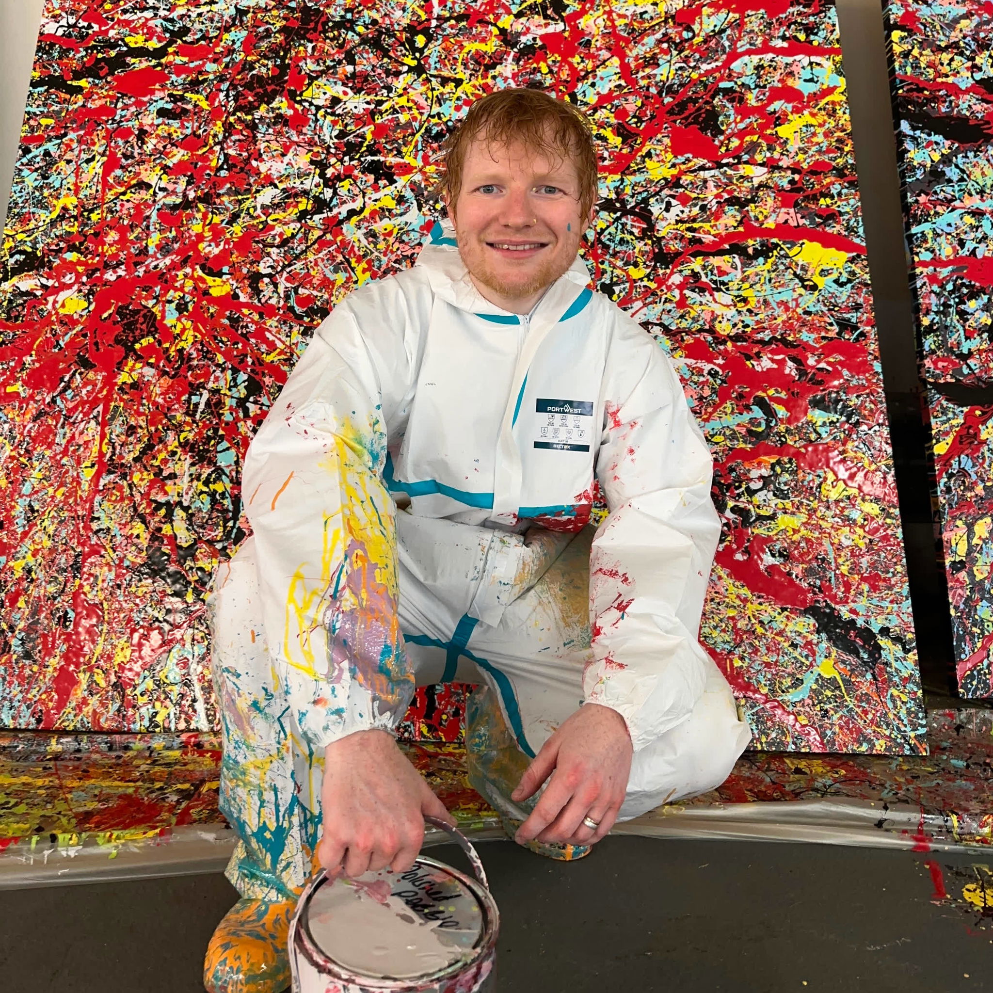 Ed Sheeran’s painting journey began in 2019 after his record-breaking Divide Tour ended. Using his spare time to create original artworks, in 2020, he used one of his early creations as the official artwork for his single Afterglow. Skip forward to 2025, the Cosmic Carpark Paintings release offers the public their first chance of collecting his original artworks and edition prints. Inspired by celestial patterns, and in-keeping with his well-documented, expressionist splash painting style, Sheeran painted his debut collection in a disused carpark in London last year in-between the international leg of his Mathematics Tour.