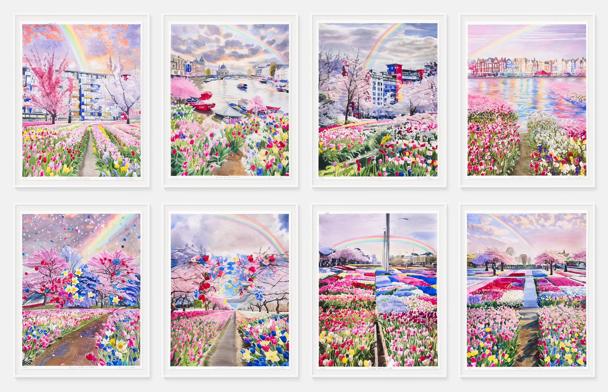 The artworks are watercolour works on paper and are presented in white, metal frames with Optium Tru Vue acrylic. The works come in two sizes, 156.1 x 113.6 cm and 119.1 x 93.6 cm (framed). Each work is titled and hand-signed by Damien Hirst on the front.