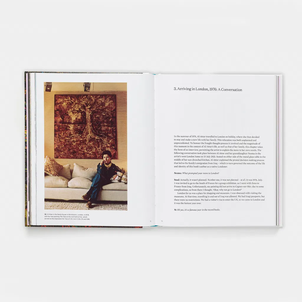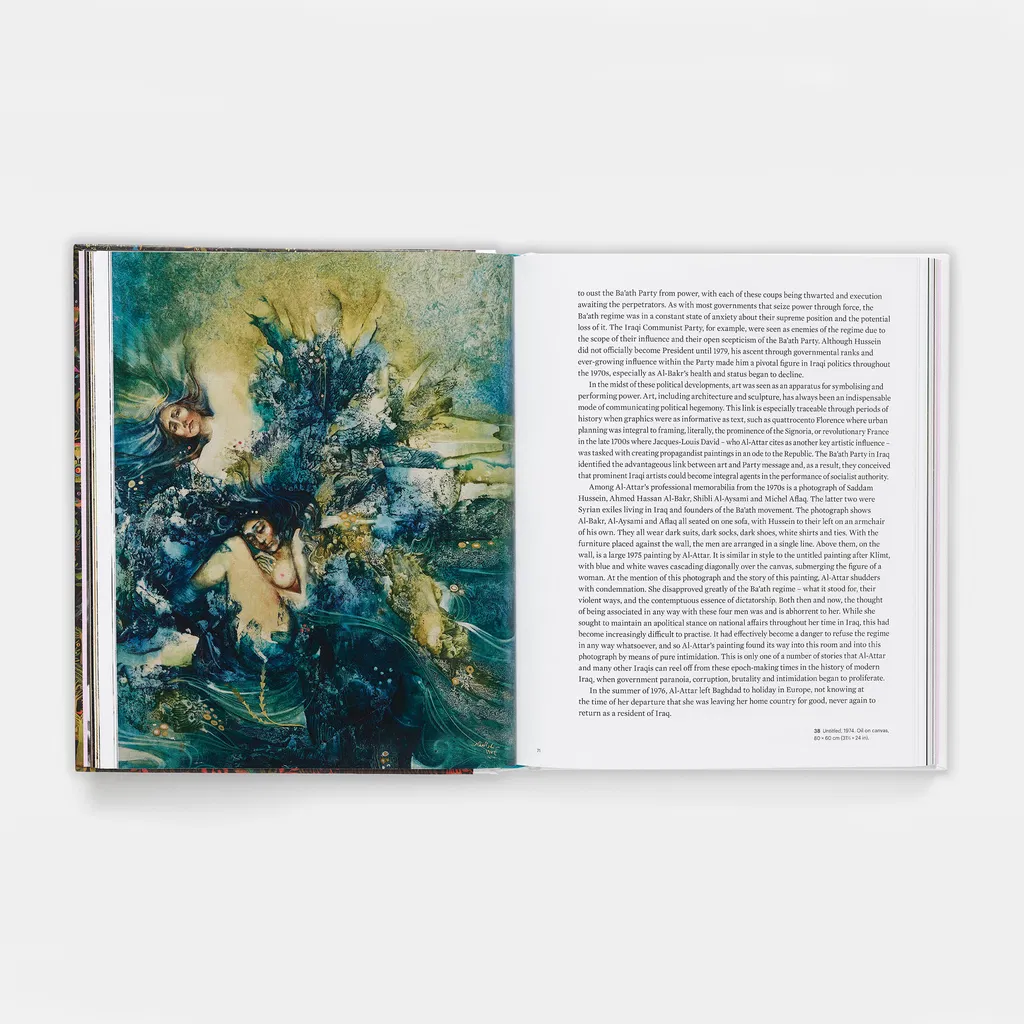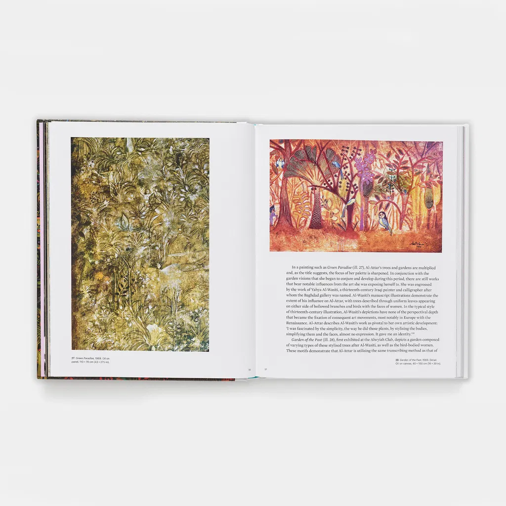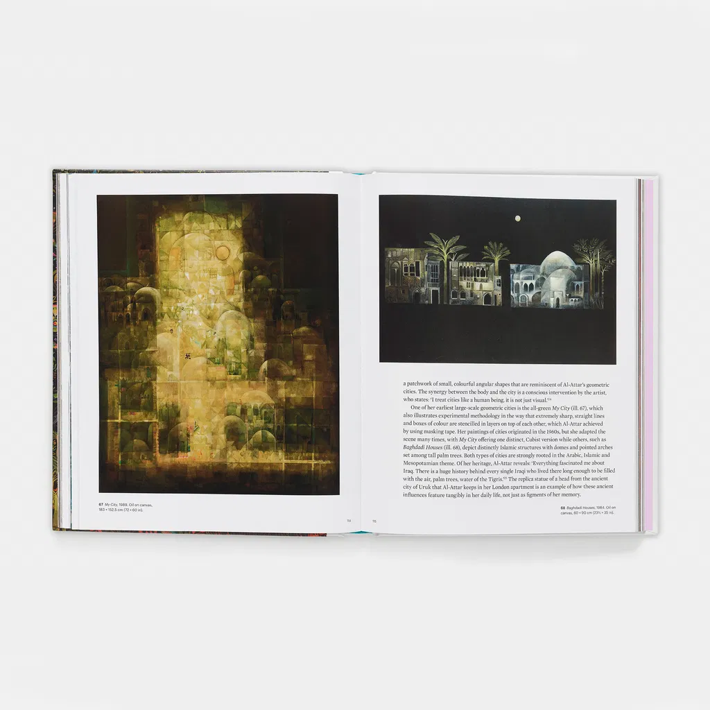 Written by the artist’s granddaughter – writer and art historian Nesma Shubber – the book offers unique access to the career of a truly sensational artist and painter. In beautifully written prose, Shubber tells the story of her grandmother’s life and work. Beginning with the artist’s early formative years in Baghdad and her arrival in London in 1976, we discover the origins of Al-Attar’s international career up to the present day in a personal account of an extraordinary woman and artist.